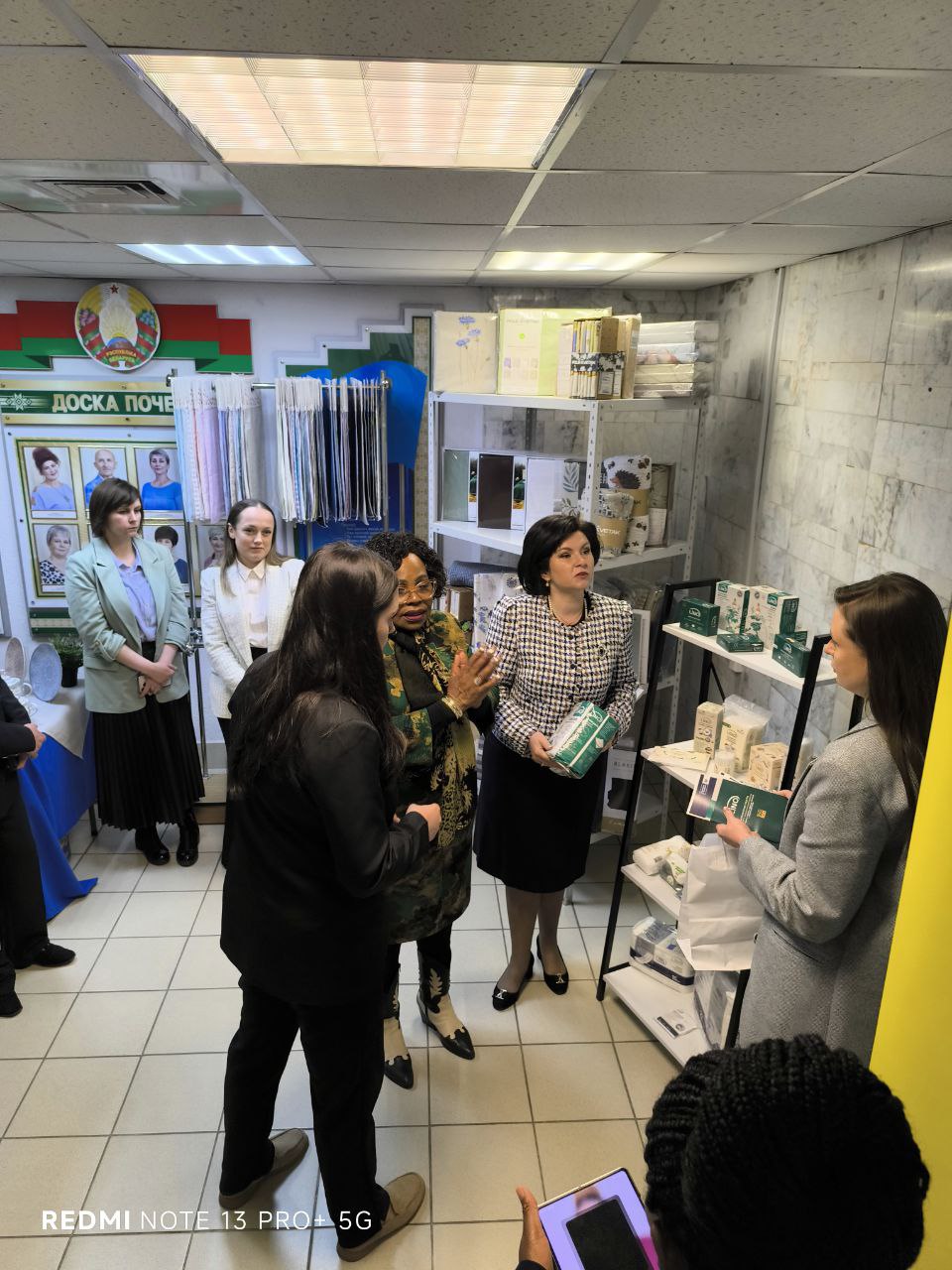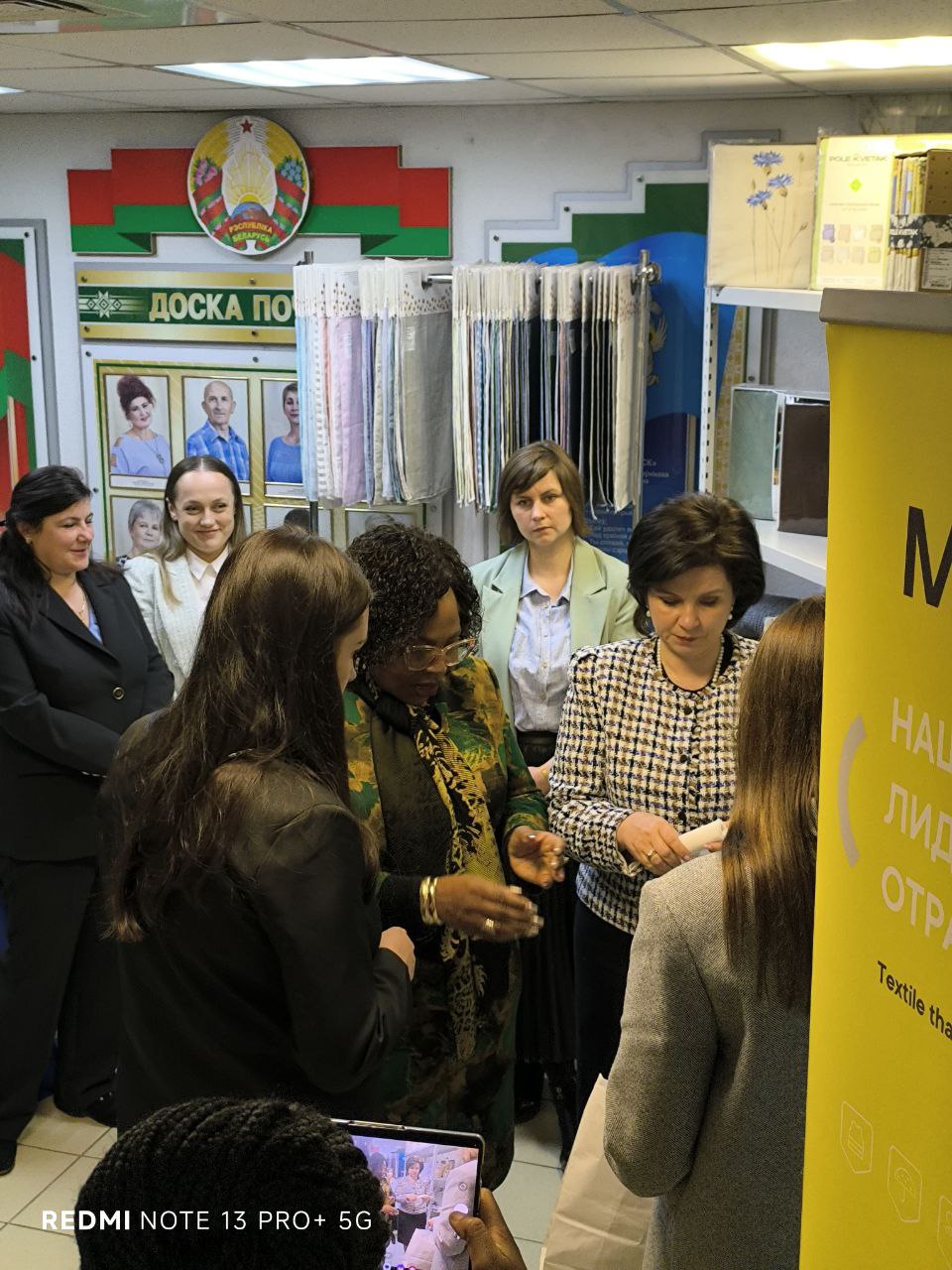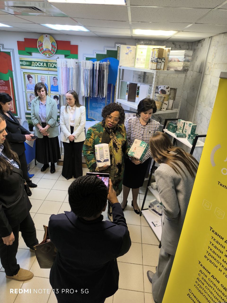 Министр по делам женщин, общин, развитию малого и среднего предпринимательства Республики Зимбабве Моника Муцвангва с делегацией ознакомились с технологическим процессом предприятия ОАО «Камволь» и дизайн-центра, а также посетили магазин «Lemongrass».